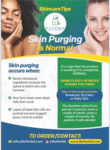 Skin purging is normal in some people, and will subside on its own! If irritation or allergy occurs, discontinue use!