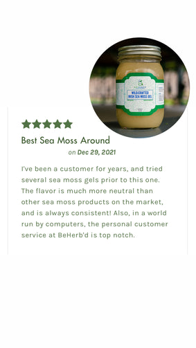 Sea Moss Gel from Be Herb’d is NEVER pool grown, NEVER bleached, NEVER processed, is all natural, and contains no chemicals!